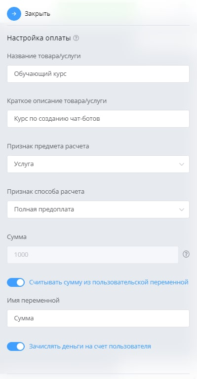 Работа с балансом контакта в боте: пополнение и списание средств с баланса