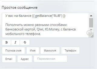 Для отображение баланса клиента добавьте в сообщение бота вызов функции: