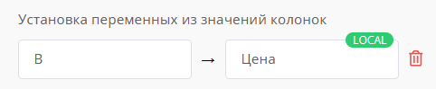 - Если вам необходимо сохранить найденные значения в переменные, то сделать это можно в разделе "Установка переменных из значений колонок". Слева необходимо указать колонку, из которой нужно сохранить значение, справа - переменную, в которую нужно записать это значение.