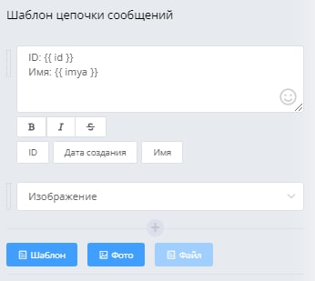 Каждая запись отправляется отдельным сообщением последовательно, кроме того, картинка или файл приходят так же отдельным сообщением. Текстовое сообщение настраивается в виде шаблона, в котором поля списка прописываются в виде переменных, просто нажмите на кнопку ниже с именем нужного поля и оно вставится в текст.