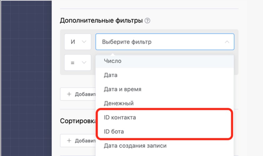 Фильтры «ID контакта» и «ID бота» для блоков «Чтение записи/ей из списка»