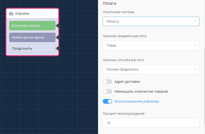 Если в вашем магазине есть реферальная система, то вы можете прямо в блоке корзина настроить процент, который будет начисляться рефереру после совершения покупки его рефералом.