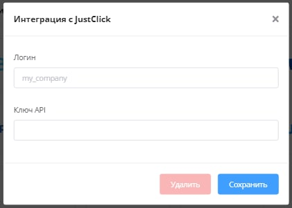 Для интеграции понадобится ваш логин и Ключ API JustClick, для этого откройте ваш личный кабинет JustClick. Логин находится в разделе Профиль → Изменить пароль — https://justclick.ru/profile/edit/, ключ API находится в разделе Интеграции — https://justclick.ru/shops/setts/apisettings/