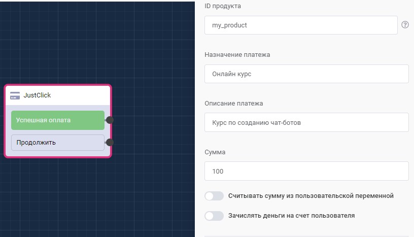 Интеграция чат-бота с сервисом для приема платежей JustClick