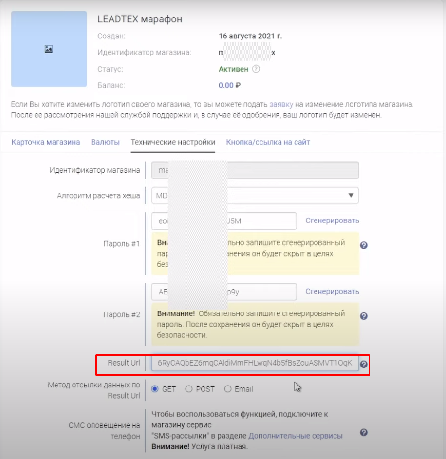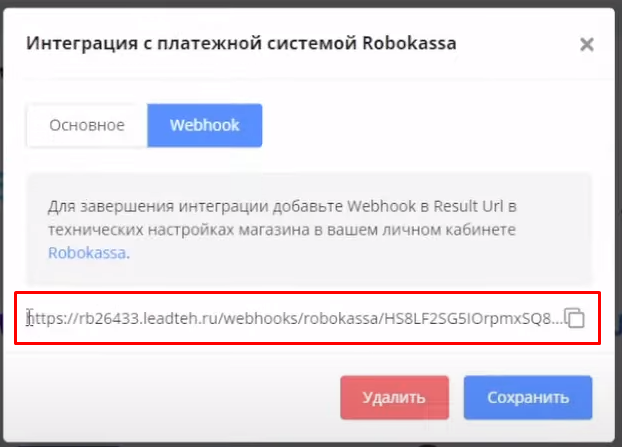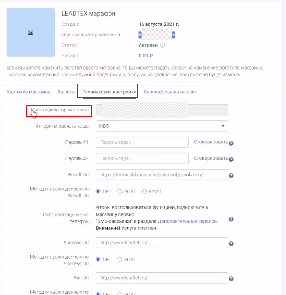 На платформе Лидтех вводим данные, созданные в Robokassa и Сохраняем