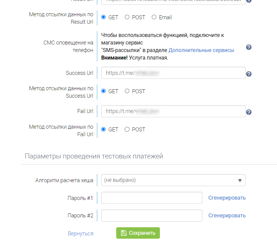 Важно! Интеграция с Robokassa и тестирование платежных блоков в сценарии возможны только при подключении реального магазина.