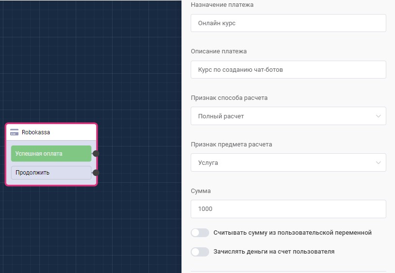 Интеграция чат-бота с сервисом для приема платежей Robokassa