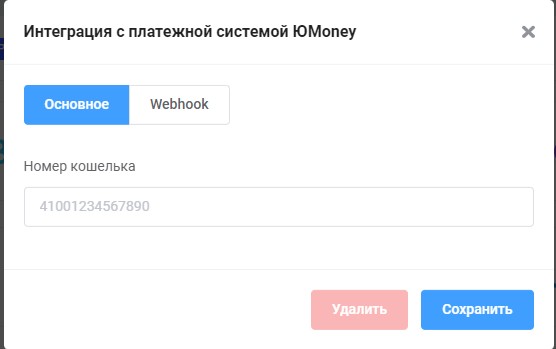 Указание номера кошелька ЮMoney