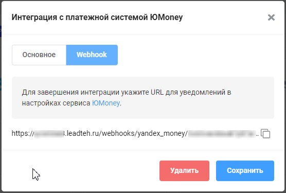 Получение Webhook для настройки интеграции