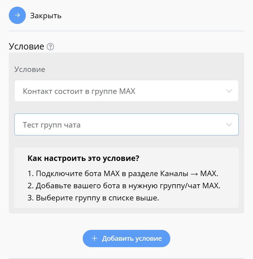 Создание условия (правила) с проверкой подписки на группу в MAX