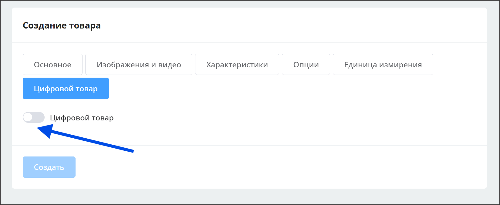 Заполните все вкладки так же, как и для обычных товаров. На вкладке "Цифровой товар" включите переключатель "Цифровой товар".